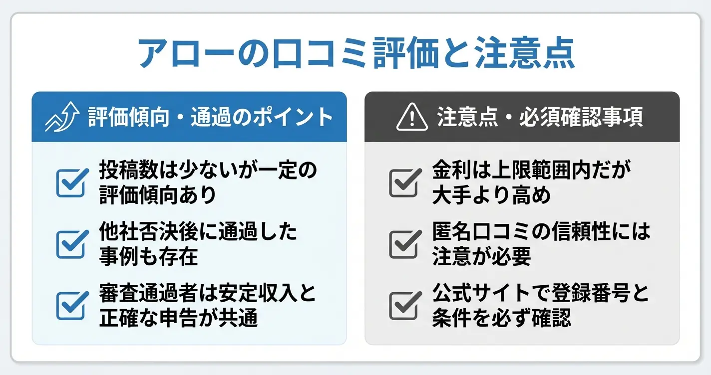 ここでは、アローの事業形態や審査基準、在籍確認の有無など、利用前に知っておきたい疑問にお答えします。