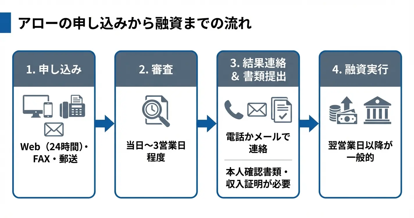 アローの審査は申し込み内容や混雑状況により変動し、通常2~3営業日程度が目安です
