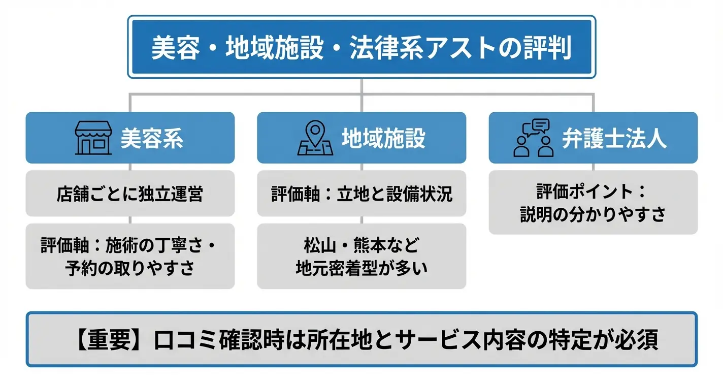 自分が利用を検討しているアストがどの分野に該当するかを特定し、該当する分野の口コミサイトや公式情報を参考に判断を進めてください。