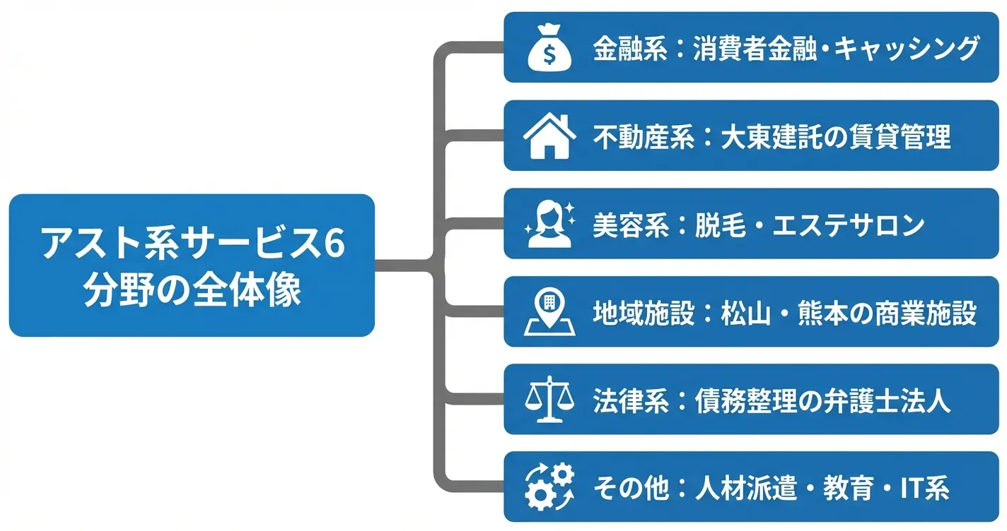 「アスト」という名称で運営されているサービスや施設は、金融・不動産・美容・地域施設など多岐にわたります