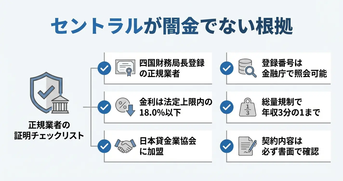 セントラルは金融庁に正式に登録された貸金業者であり、闇金ではありません。