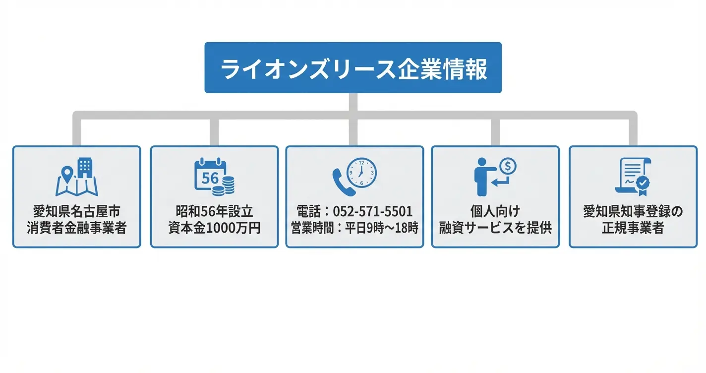 ライオンズリース株式会社は、愛知県名古屋市に本社を置く消費者金融事業者です。
