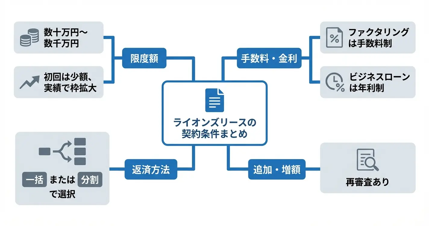 ライオンズリースを検討する際、いくらまで借りられるか、どの程度の金利がかかるのか、返済はどのような形で進めていくのかという契約条件は必ず確認しておくべき事項です。