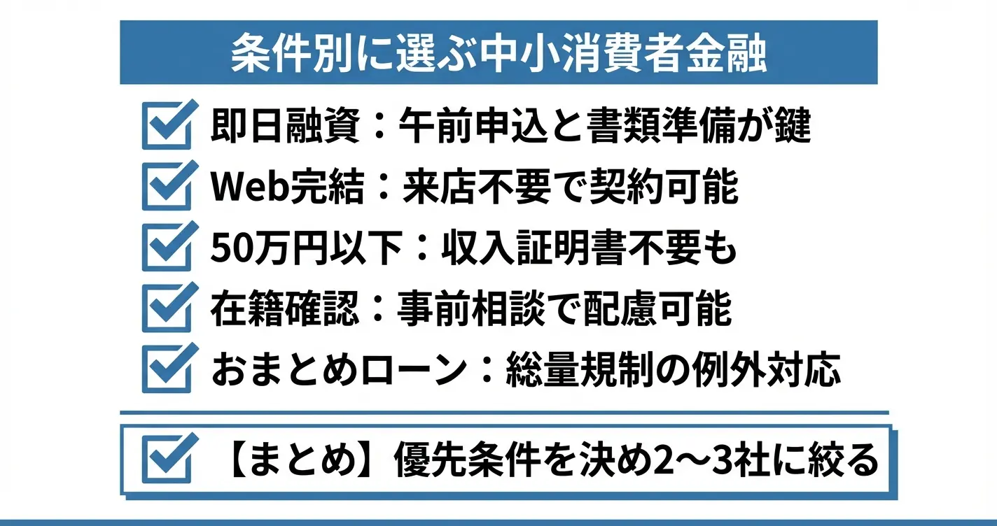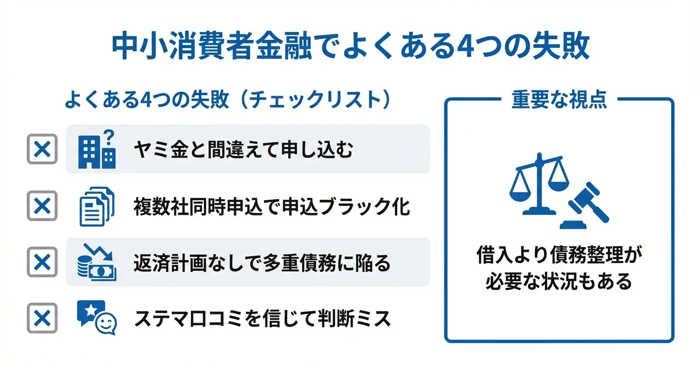 中小消費者金融は誰にでも適した選択肢ではなく、自分の状況と照らし合わせて判断する必要があります。