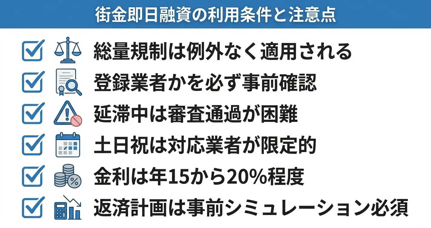 街金での即日融資を検討する際、利用条件や審査基準、返済計画など事前に確認しておくべき点があります。
