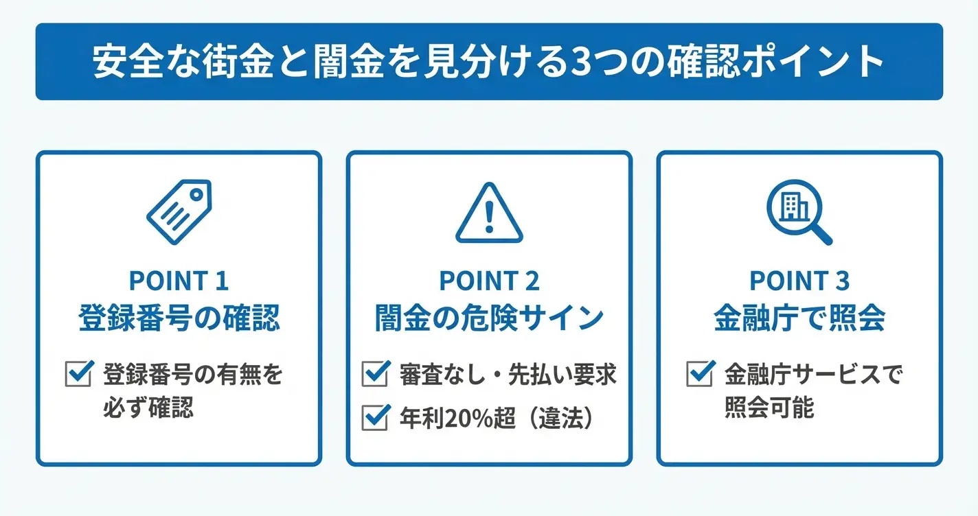 安全な街金業者を見分けるための確認ポイント
