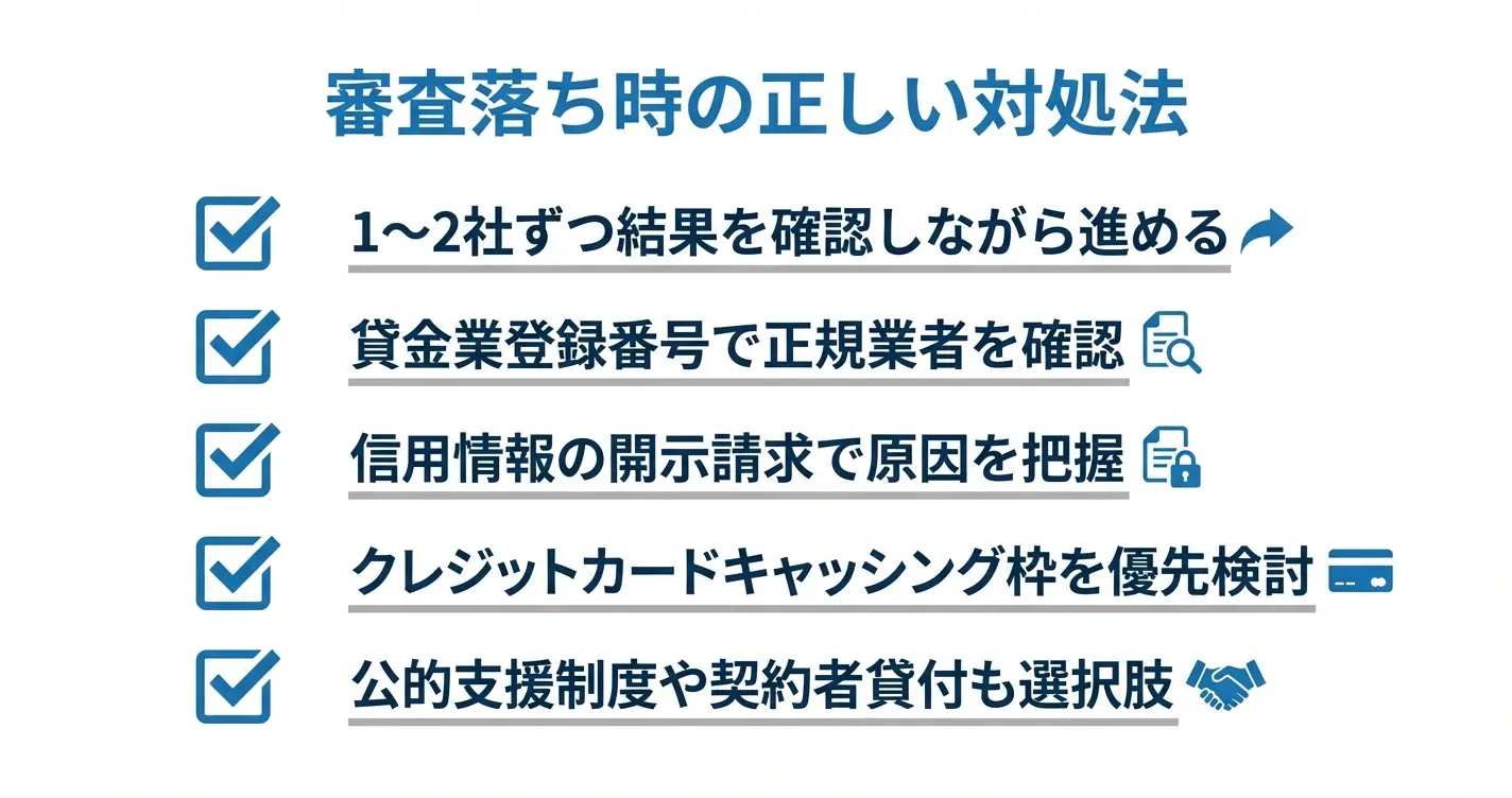 ここまでの情報をもとに、審査落ちのリスクを理解し、適切な手順で対応することで、安全に資金調達できる可能性が高まります。